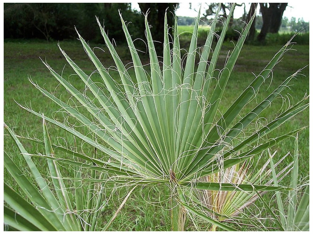 Listy jsou dlanité, sytě zelené, s typickými vláknitými okraji, které jí dodávají charakteristický „rozcuchaný“ vzhled. Ve volné přírodě bývá kmen pokryt zbytky starých řapíků, které vytvářejí typickou suknici.
